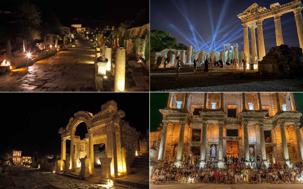 Binlerce yıllık Efes, geceyle birlikte adeta ikinci bir doğuşu yaşıyor.