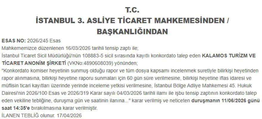 Bu gelişme üzerine İstanbul 3. Asliye Ticaret Mahkemesi, süreci yeniden ele aldı. Mahkeme, 16 Mart 2026 tarihli tensip zaptıyla konkordato komiser heyetinin raporlarının incelenmesine ve ek olarak bilirkişi raporu hazırlanmasına karar verdi. Bilirkişi heyetine, şirketin mali kayıtlarını yerinde inceleme yetkisi tanınırken, raporun sunulması için 60 günlük süre verildi.
