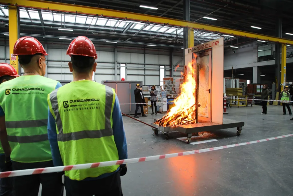 Bu testlerde, yangına dayanıklı kapı sistemlerinin 120 dakikaya kadar bütünlüğünü koruyacak şekilde tasarlandığı vurgulandı.