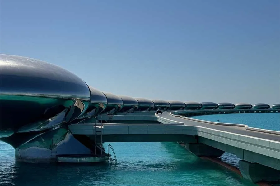 Fütüristik su üstü villalarda, ileri mühendislik çözümleri doğal malzemelerle buluşturuluyor. Tasarım, teknoloji ile insani sıcaklığı dengeliyor.