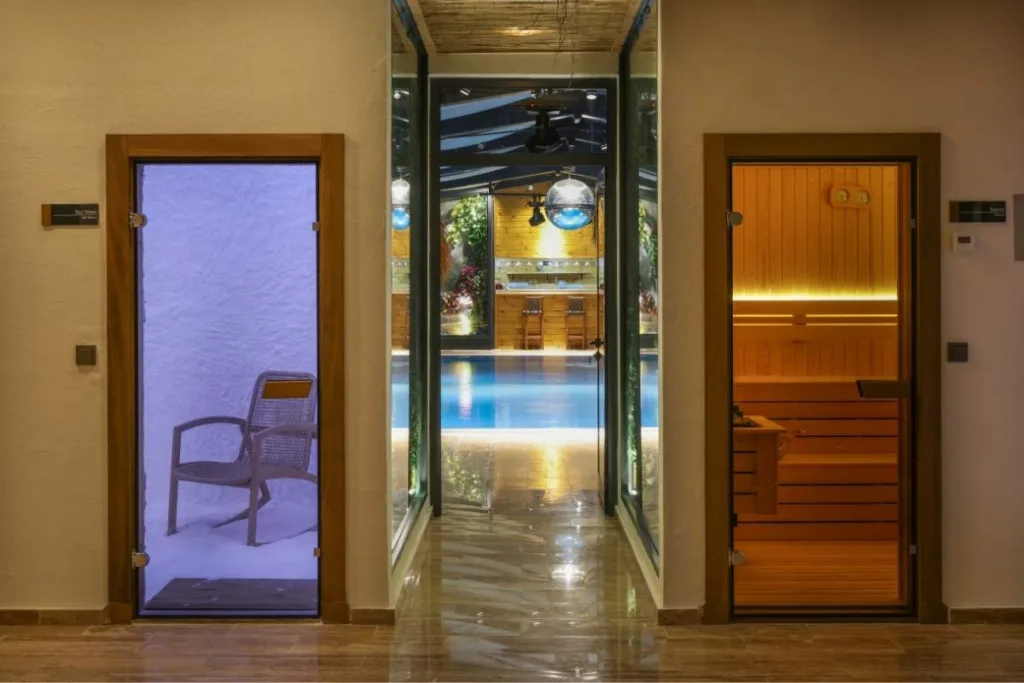 Her şey ihtiyaca göre ilerledi. En başta bir SPA alanımız yoktu. Süreç devam ederken Türkan, SPA’ya da ihtiyacımız olduğunu söyledi. Uygun bir alanımız vardı, buraya inşa ettik. SPA’daki her birim Türkan’ın yönlendirmesiyle oluşturuldu. “Detoks programı yazdığım kişilerin ödem atması gerekiyor, bunun için saunaya ihtiyacımız var” dedi. Aynı zamanda suyun iyileştirici gücüne ihtiyacımız var dedik, maksimum iki kişi kapasiteli bir hamam inşa ettik. Bununla kişilerin yalnız kalabilmesini, ruh-beden-zihin bütünlüğünü sağlamasını hedefledik. Bir tuz odasına ihtiyacımız olduğunu fark ettik, çünkü “nefes aldırmayı” amaçlayan bir tesis olarak tuz odası kritik bir noktadaydı.