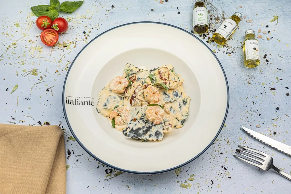 Saatler boyunca ağır ateşte pişirilmiş dana tiftik etinin, taze otlu patates püresi, karamelize gümüş soğan ve gravy sos eşliğinde servis edildiği Fırından Dana Tiftik, deneyenlerin damaklarında unutulmaz bir tat bırakıyor. Pizza Italiante’nin denizden gelen en yeni lezzeti Karidesli ve Deniz Taraklı Ravioli. Taptaze el yapımı ravioli, zengin deniz tarağı dolgusu ve özenle seçilmiş karideslerle hazırlanıp, kurutulmuş domates, krema ve taze fesleğen yapraklarıyla tamamlanan bu özel tarif, her lokmada deniz ve Akdeniz tazeliğini buluşturuyor.