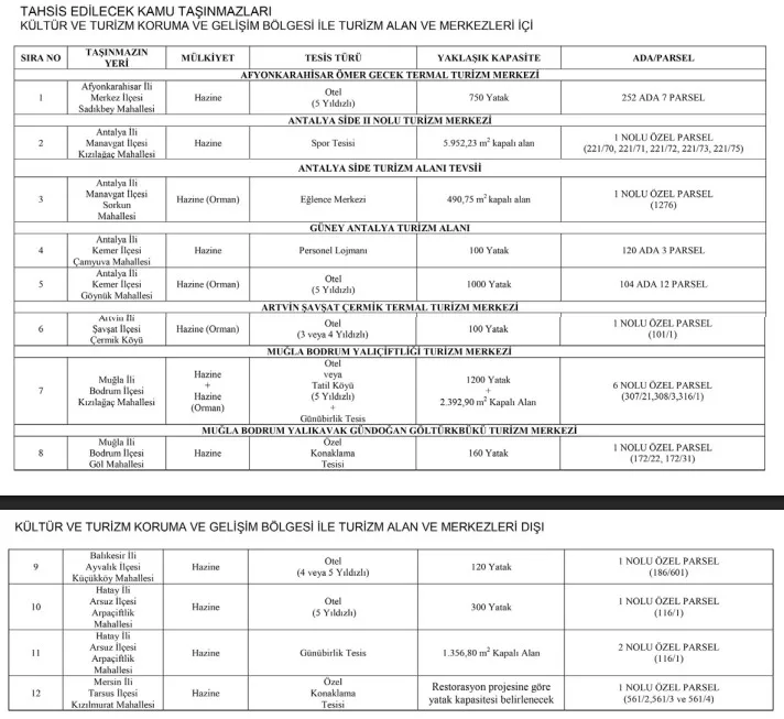 Bakanlık, bu tahsis süreciyle Türkiye’nin turizm altyapısını güçlendirmeyi ve uluslararası yatırımcıların ilgisini artırmayı hedefliyor. Açıklamada, tahsis edilecek taşınmazların turizm amaçlı projeler için değerlendirileceği ve ülke ekonomisine katkı sağlayacak yatırımların öncelikli olacağı ifade edildi.